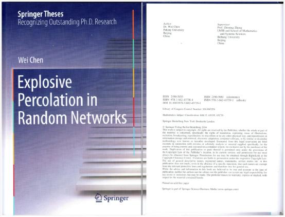 由郑志明教授指导的博士生陈巍的博士学位论文《Explosive Percolation in Random Networks》,于2014年入选Springer优秀博士学位论文。该项目6年前开始评选,全球共入选431篇,大陆31篇。