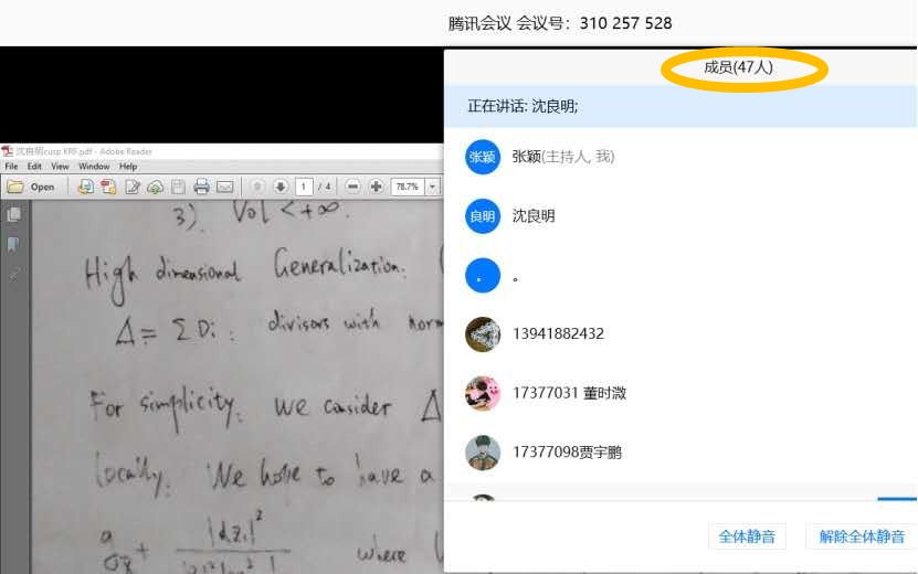 2020年5月20日下午,实验室“青年教师科研工作论坛”在腾讯会议线上举办。会议由基础数学系系主任高鹏老师主持,近50名师生参加了论坛。