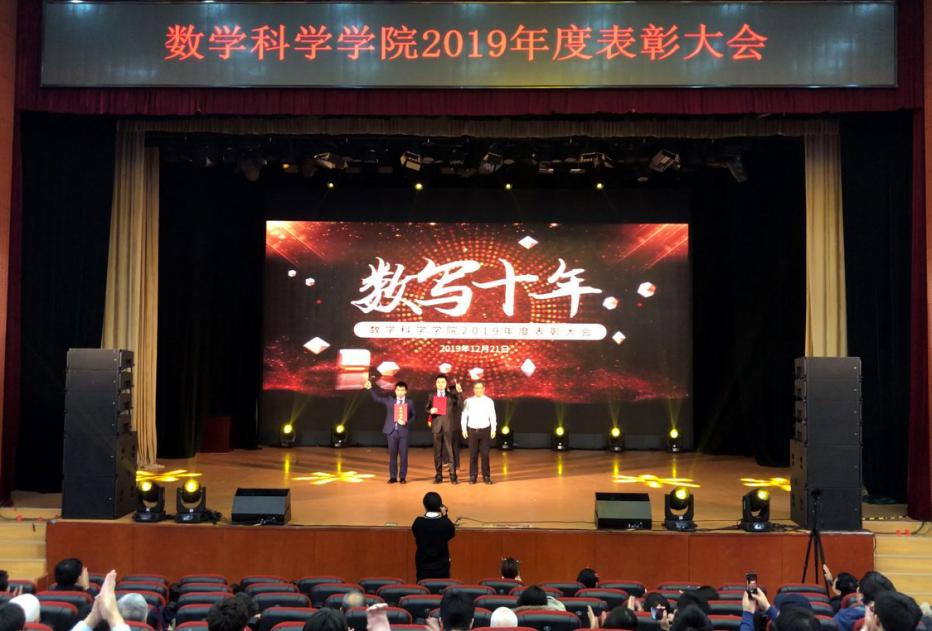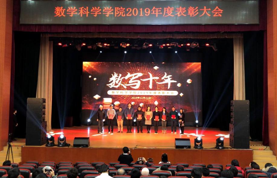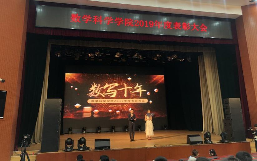 2019年12月21日下午,“数写十年”数学科学学院2019年度表彰大会在北航沙河校区咏曼剧场隆重举行。中国科学院林群院士,北航教务处副处长王喜忠,北航科研院基础与人文社科处副处长张凤,数学学院离退休教师代表徐兵、孙善利、傅丽华、高宗升及09级校友李垠序作为嘉宾出席大会,数学学院师生代表400余人参加了大会。