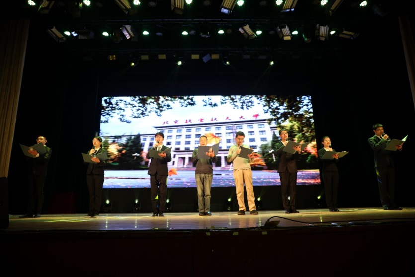 为纪念数学学院建院十周年,数学学院师生原创诗朗诵《数韵之美,璀璨航光》首先登场,带领现场师生深情追忆了北航数学学院的建设和发展历程。