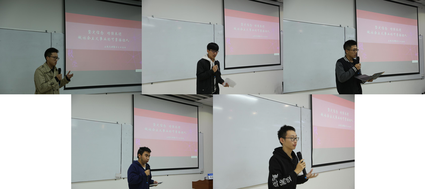 主题党课后,谭镇涛、张翔宇、郭志鹏、王文昊、张造诣5名学生代表依次上台发言,和同学们分享了自己的学习经验、科研经历、学业规划及成长历程。活动最后,黄海军副校长对同学们的发言进行认真点评并耐心回答了现场同学的提问。
