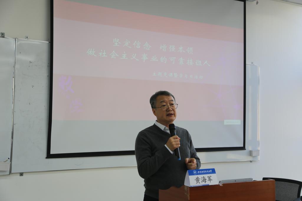 黄海军副校长为同学们带来题为“坚定信念,增强本领,做社会主义事业的可靠接班人”的主题党课。